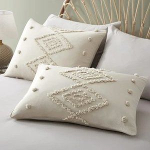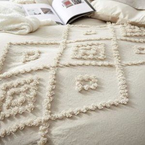 Elegant cream duvet cover with textured diamond patterns. Soft and stylish for any bedroom decor.