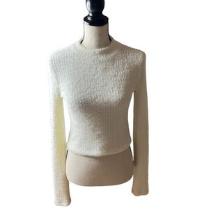 Anthropologie Cream Fuzzy Ribbed Knit Sweater – Soft Cropped – Size S