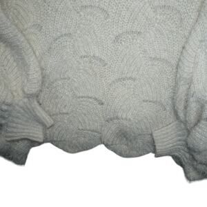 Features: Cowl neck, ribbed cuffs, scallop-style hem, fuzzy eyelash knit