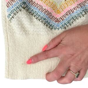 Anthropologie Cream Rainbow Cross Stitch Sunrise Embroidered Knit Tank Top Sz XS