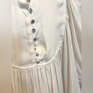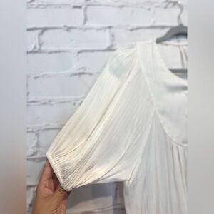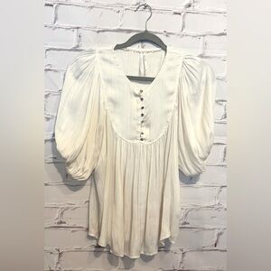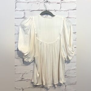 Keywords: Anthropologie blouse XS, cream silky blouse, bubble sleeve top, V-neck flowy blouse, silver button blouse, airy feminine blouse, versatile Anthropologie top, chic casual blouse, women’s stylish blouse, Anthropologie elegant top.