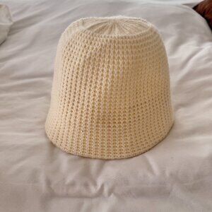 Cream Knit Wool Blend Winter Beanie Bucket Hat from Anthropologie. Very soft wool-blend, off-white cream color! Great shape and chic style for Fall, Winter & Spring - 90's / Y2K. Made in Amsterdam. Purchased from Anthropologie but never worn. Great condition, some faint makeup on brim from trying on that should easily wash out - see pic. One Size. Approx. 13" total length, 8.25" tall.