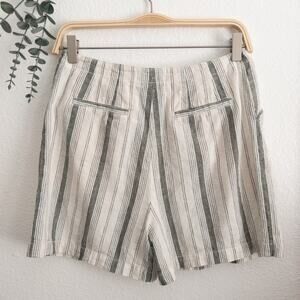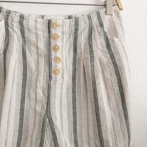 Anthropologie Cream and Green Stripe Button Fly Linen Cotton Shorts 2