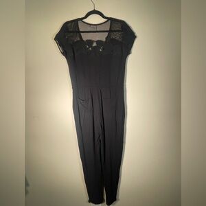 Anthropologie Crinkle Gauze Jumpsuit with Floral Appliqué and Mesh by Lilka XS