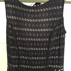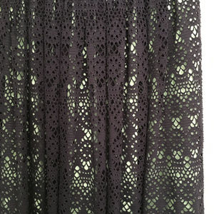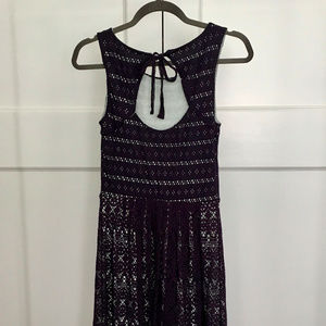 Stunning crochet lace fit-and-flare dress from Anthropologie. Soft, stretchy, comfortable cotton blend, barely worn, EUC. Navy blue crochet with pale mint green lining. Tie neck with keyhole back. 37 inches long shoulder to hem.