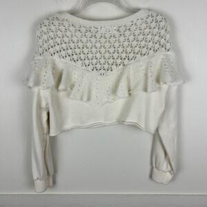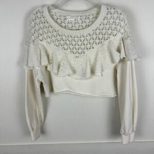 Anthropologie Cropped Long Sleeve Layered Trim Sweatshirt M