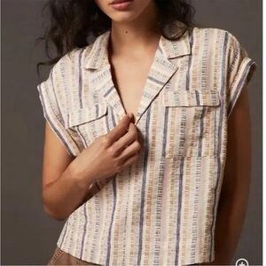 Anthropologie Cropped Striped Utility Pullover Top Shirt Blouse Aztec Size XL