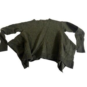The Anthropologie Oversized Sweater is a stylish and versatile addition to any woman's wardrobe. Made from a tight-knit green fabric, this sweater features a sharkbite hem and long sleeves, perfect for the winter and fall seasons. The oversized fit and collarless design make it comfortable and easy to wear for various occasions, such as travel, casual outings, parties, and workwear. With its raglan sleeves and regular fit, this sweater is both classic and trendy, suitable for outdoor and city-themed looks.