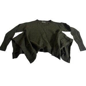 Anthropologie Cropped Sweater Women Small Green Knit Long Sleeve Sharkbite Hem