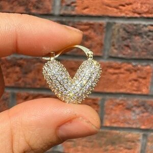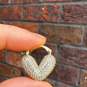 Anthropologie Crystal Heart 18K Gold Plated Stainless Steel Waterproof Earrings