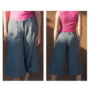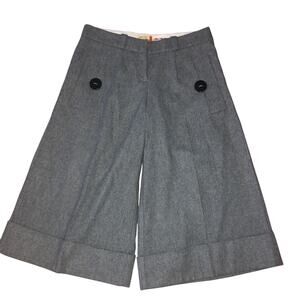 Adorable and Vintage looking Culottes from Anthropologie. Cropped Wide Leg Wool & Cashmere Gray Cotton-Lined Trousers 2 front pockets with Large button detail on on each side. Pockets are velvet lined, one is still sewn together.