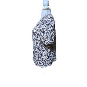 Anthropologie Current Air Animal Print Puff Short Sleeves Top Blouse Back Buttons Size Small