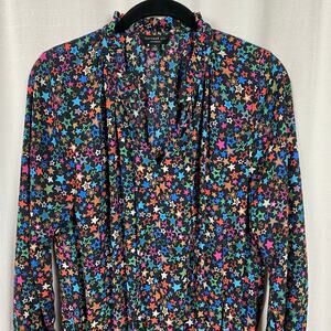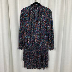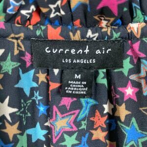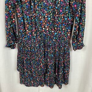 Anthropologie Current Air Black Star Print Aurelie Pleated Mini Dress Sz.M