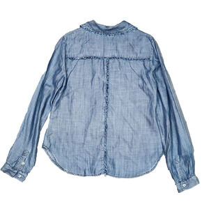 Anthropologie Current Air Chambray Shirt Fray Detail Seams Button Up Blue Medium