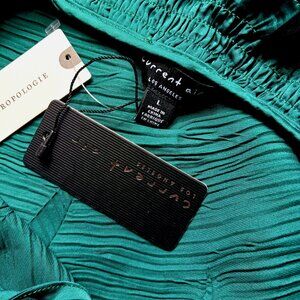 This Anthropologie blouse by Current Air showcases a refined and sophisticated design with its elegant pleats and vibrant teal hue. Crafted from durable polyester, it features long sleeves and a unique texture that adds depth and character. The top is perfect for those who appreciate style and comfort, offering a versatile fit for various occasions.