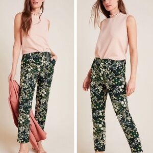 Anthropologie Current Air Daisy Floral Jacquard Slim Straight Trouser Pants XS