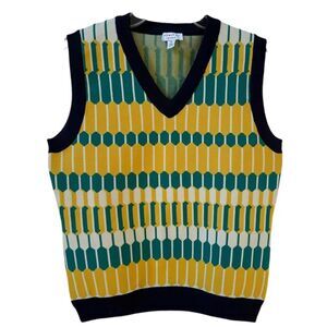 Anthropologie Current Air Geometric Print Knit Retro V Neck Vest M NWOT