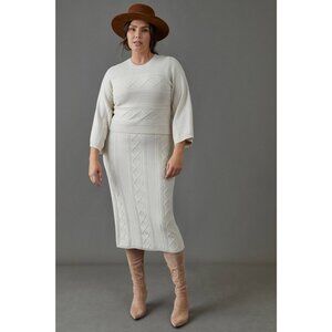 Cable-knit touches and a so-soft finish infuse this midi with sophistication and charm - while a nipped-in waist lends the illusion of matching separates.