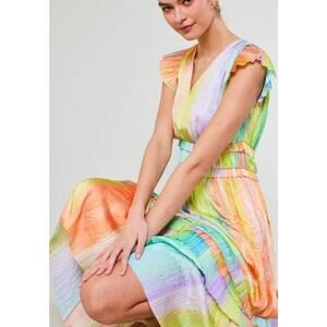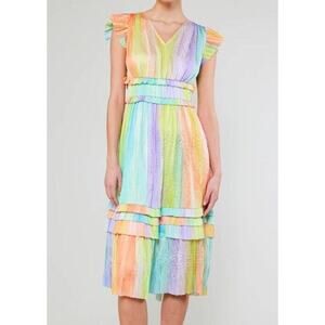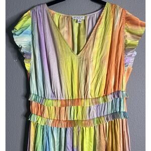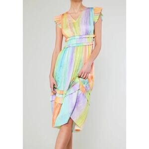 * Title: Anthropologie Current Air Med Sereai Rainbow Painterly Midi Dress Tiered Fairy
