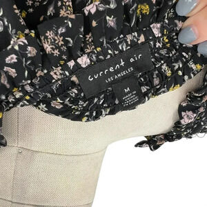 Anthropologie Current Air Peasant Mini Dress Floral Print Smocked Black Medium