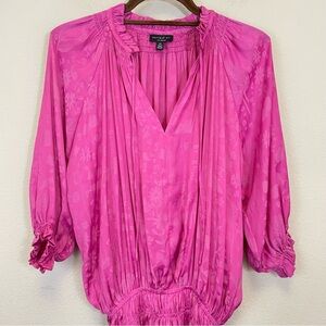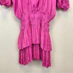 Anthropologie Current Air Pink Floral Smocked Tiered Mini Dress Size XS