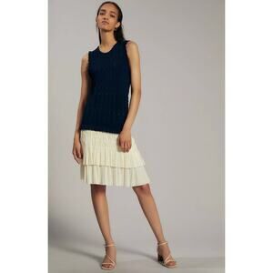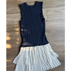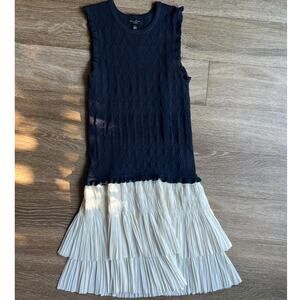 Anthropologie Current Air Pleated Navy Knit Mini Dress Large