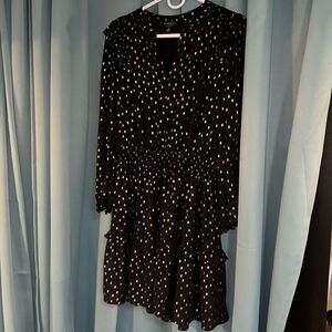 Anthropologie Current Air Ruffled Metallic Rainbow Dot Mini Dress S