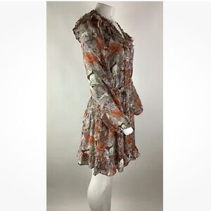 Anthropologie Current Air Sz S Picot Stitch Floral Dress Brown Orange Flare