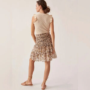 Anthropologie Current Air Sweater Dress Smocked Ruffle Crewneck Floral Knit Mini