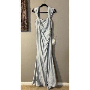 Cynthia & Sahar Womens Medium Blue Satin Corset Mermaid Evening Dress Gown CS101