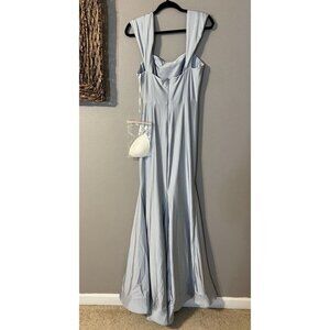 Anthropologie Cynthia & Sahar Medium Blue Satin Formal Evening Dress Gown CS101