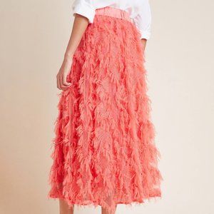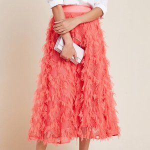 Bright size 8P coral Anthropologie Cynthia Textured A-Line Midi Skirt. Eye-catching and oh-so-sweet, this twirl-worthy skirt features fringed accents for a look that's both playful and poised. NWT.