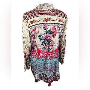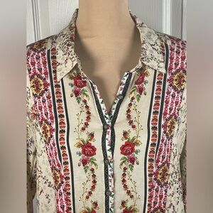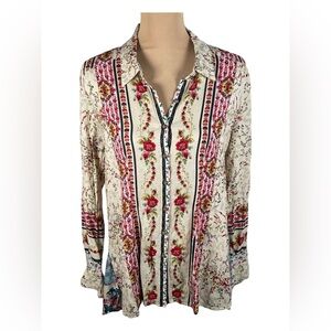 Anthropologie Cyrena Mixed Floral High Lo Button Down Linen Blouse. Women's size Large. Rayon and linen mix.