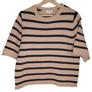 Anthropologie DEMYLEE Ezra Cotton NavyTan Nautical Striped Short Sleeve Sweater