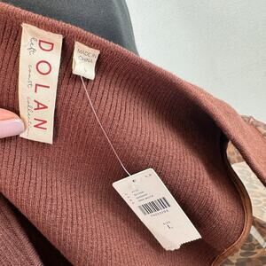 Anthropologie DOLAN Brown Sweater Leopard Sweetheart Sheer Puff Sleeve Large NEW