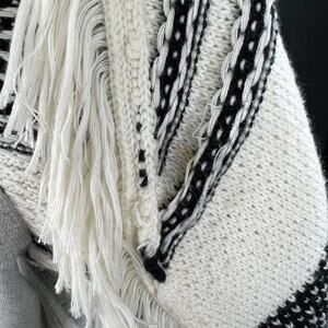 Dolan Gray Cream Striped Draped Fringe Open Front Cardigan Sweater