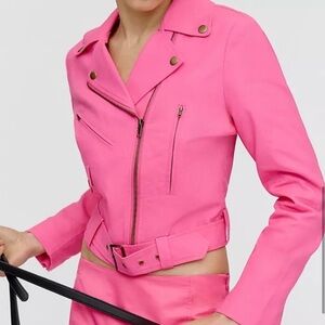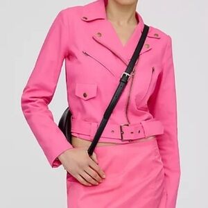 Anthropologie DOLAN Pink Linen Moto Jacket