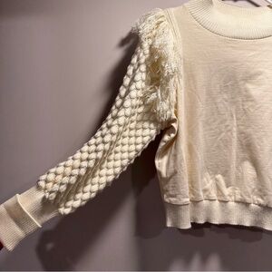 Anthropologie DOLAN Woman's Ivory Fringed Sweater in Cream