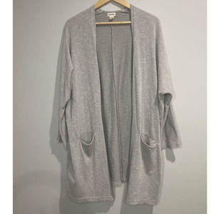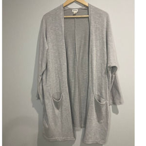 Donni oversized ribbed slouchy cardigan duster in gray. Donni is sold at Anthropologie