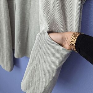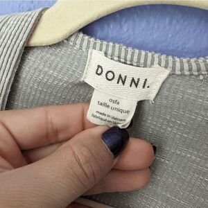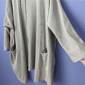 Women's Cardigan. Anthropologie - DONNI. Ribbed Sweater Coat Pinstriped. Has pockets. Women's One-Size. 55% Cotton, 41% Poly, 4% Spandex