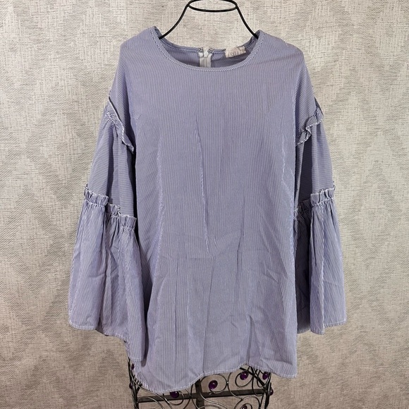 Anthropologie DRA Los Angeles blue and white striped oversized flutter sleeves