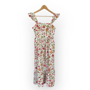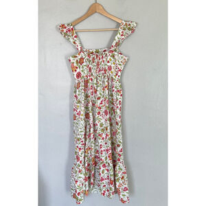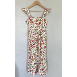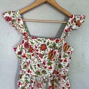 Anthropologie DRA Resa Moroccan Midi Dress Size S Small White Red Green Floral