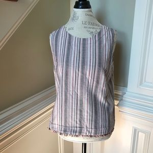 Anthropologie DREW Stripe Top Shirt Womens Medium Pink Mauve Sleeveless Fringe