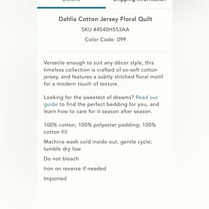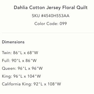 Anthropologie Dahlia Cotton Jersey Floral Quilt Size Queen NWT