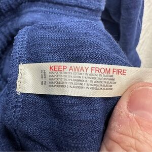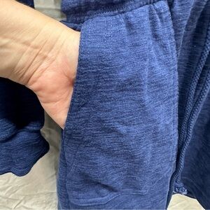 Soft, almost sweatshirt/terrycloth like feel. Drawstring waist. Long sleeves. Curved hem. Side pockets. Oversized fit — could fit at least a size small comfortably.