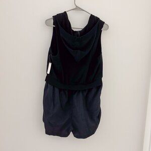 Anthropologie Daily Practice Black Direct Kick Romper Hooded Athletic NWT