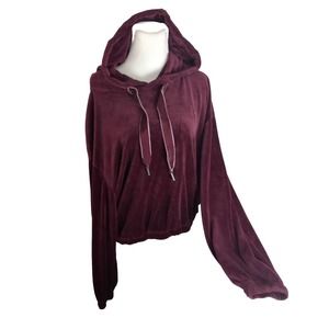 Anthropologie Daily Practice Burgundy Oversized Velour Velvet Hoodie Size L