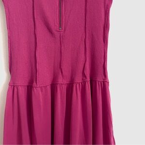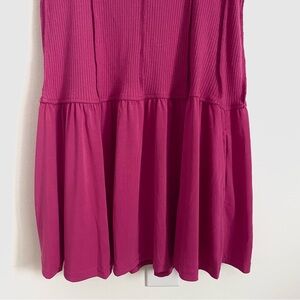 Serve sporty-chic vibes on and off the court with this Anthropologie Daily Practice Buzzer Beater Dress. Designed in a bold magenta pink, this sleeveless mini dress blends activewear comfort with an effortlessly flattering silhouette. This dress combines sporty performance with Anthropologie’s signature style. The ribbed top gives structure while the relaxed skirt keeps you cool and comfortable. Easy to move in, flattering, and a standout color that turns heads.