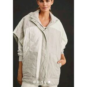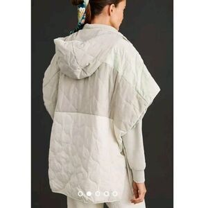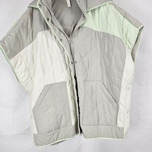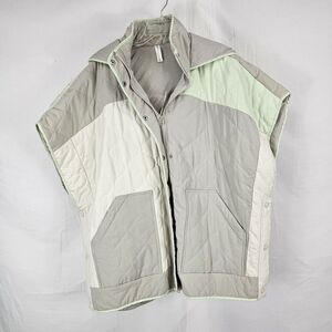 Anthropologie Daily Practice Colorblock Puffer Poncho Gray Light Green L/XL