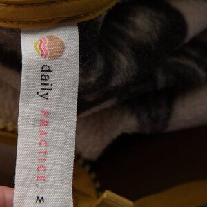 Anthropologie Daily Practice Fleece Jacket Floral Cream Black Yellow Size Medium. Cozy meets chic in this jacket featuring a floral print in black and cream with vibrant yellow trim. Perfect for layering through cooler seasons, this soft fleece combines comfort with standout style.